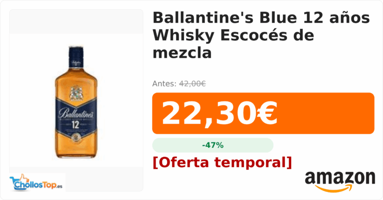 Ballantine's Blue 12 años Whisky Escocés de mezcla💰 Precio actual: 22.3€🪙 Antes: 42€📉 Descuento: -47%Ir al chollo