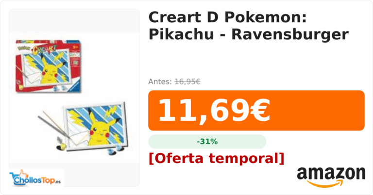 Creart D Pokemon: Pikachu - Ravensburger💰 Precio actual: 11.69€🪙 Antes: 16.95€📉 Descuento: -31%Ir al chollo