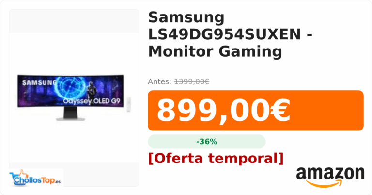 Samsung LS49DG954SUXEN - Monitor Gaming💰 Precio actual: 899€🪙 Antes: 1399€📉 Descuento: -36%Ir al chollo