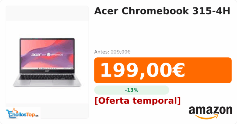 Acer Chromebook 315-4H💰 Precio actual: 199€🪙 Antes: 229€📉 Descuento: -13%Ir al chollo