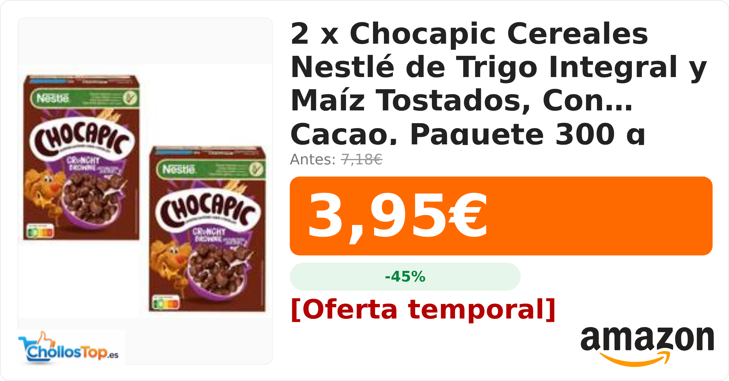 ![2 x Chocapic Cereales Nestlé de Trigo Integral y Maíz Tostados, Con Cacao, Paquete 300 g [Unidad 1'97€. Comprando 4, Unidad a 1'79€]](https://static.chollometro.com/threads/raw/dPN0Y/1623221_1/re/202x202/qt/70/1623221_1.jpg)