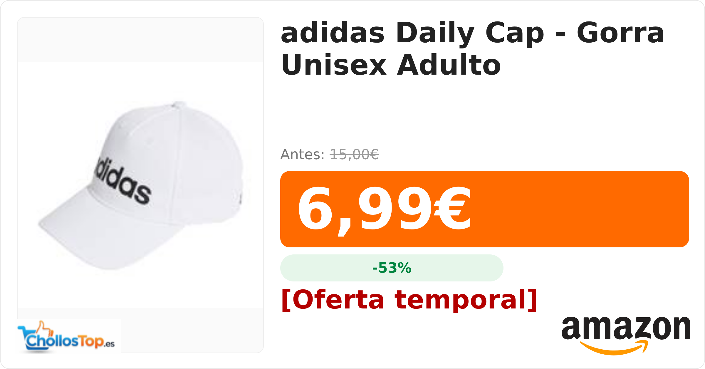 🔥 adidas Daily Cap – Gorra Unisex Adulto BY ChollosTopEs septiembre 8, 2025 adidas Daily Cap – Gorra Unisex Adulto 💰 Precio actual: 6.99€ 🪙 Antes: 15€ 📉 Descuento: -53% Ir al chollo