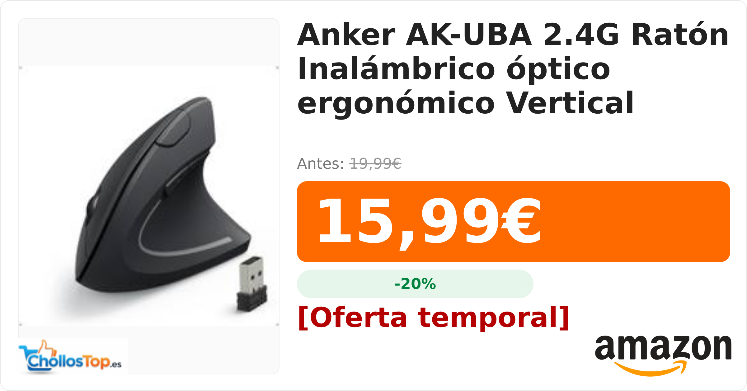 🔥 Anker AK-UBA 2.4G Ratón Inalámbrico óptico ergonómico Vertical