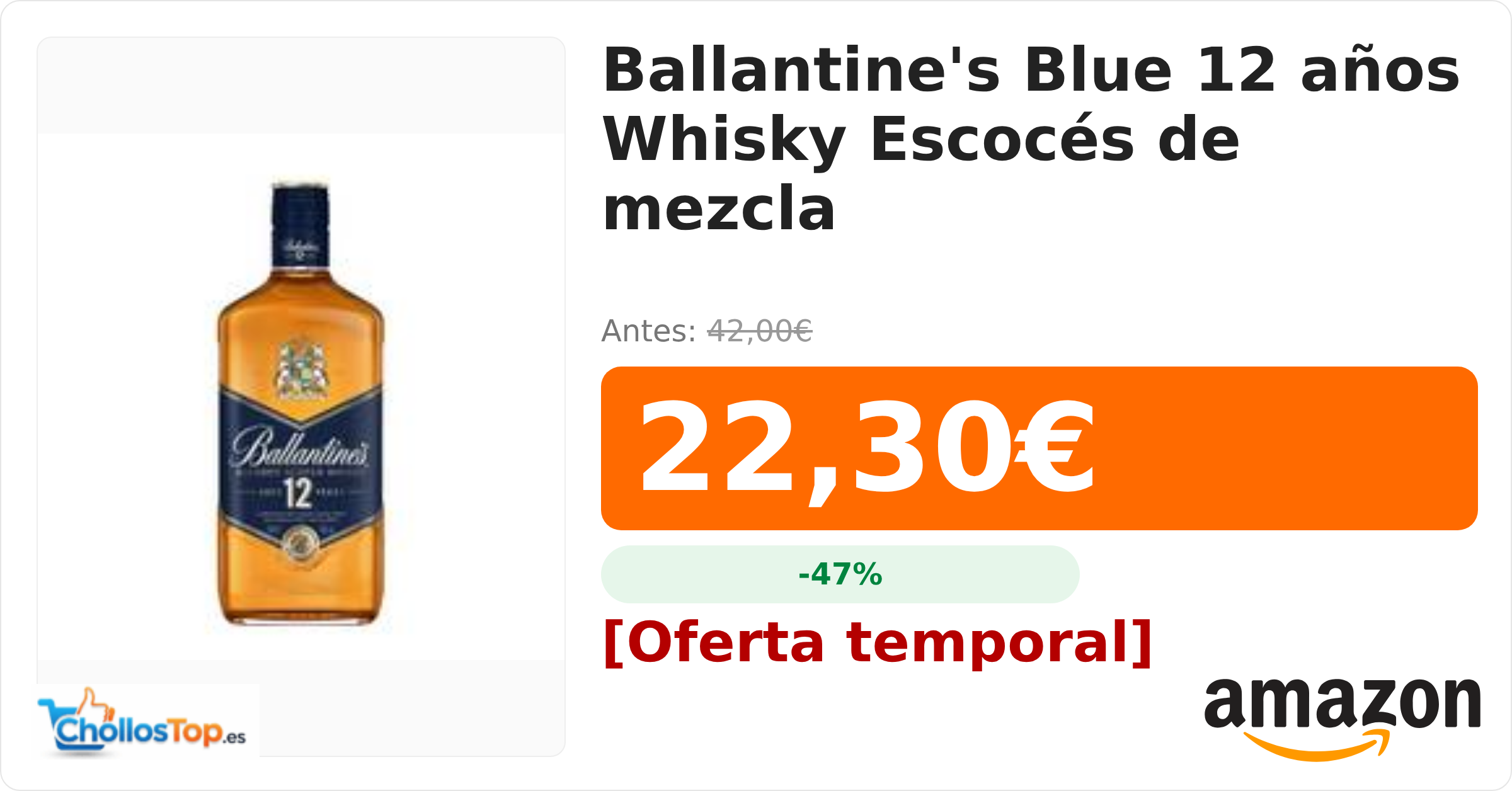 🔥 Ballantine's Blue 12 años Whisky Escocés de mezcla BY ChollosTopEs septiembre 10, 2025 Ballantine's Blue 12 años Whisky Escocés de mezcla 💰 Precio actual: 22.3€ 🪙 Antes: 42€ 📉 Descuento: -47% Ir al chollo
