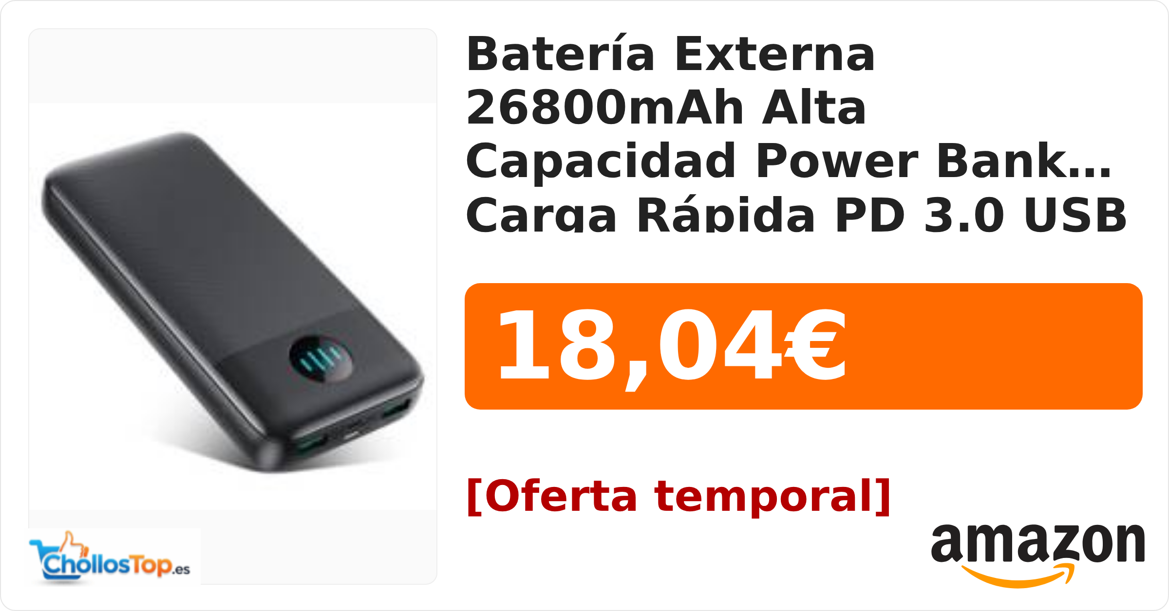 🔥 Batería Externa 26800mAh Alta Capacidad Power Bank Carga Rápida PD 3.0 USB C In & out Cargador Portátil, Tri-Output Batería Portátil BY ChollosTopEs septiembre 10, 2025 Batería Externa 26800mAh Alta Capacidad Power Bank Carga Rápida PD 3.0 USB C In & out Cargador Portátil, Tri-Output Batería Portátil 💰 Precio actual: 18.04€ Ir al chollo