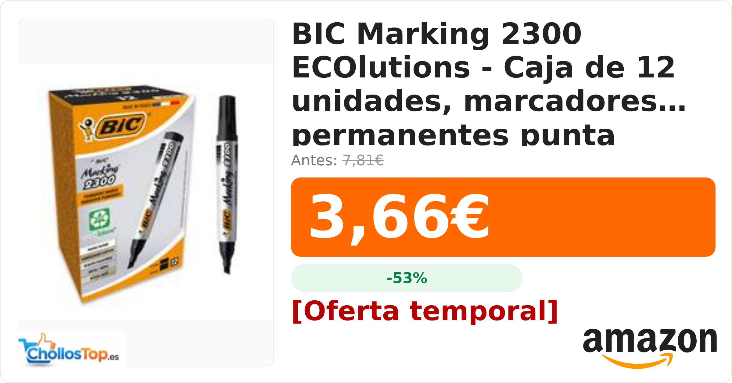 🔥 BIC Marking 2300 ECOlutions – Caja de 12 unidades, marcadores permanentes punta media biselada, color negro