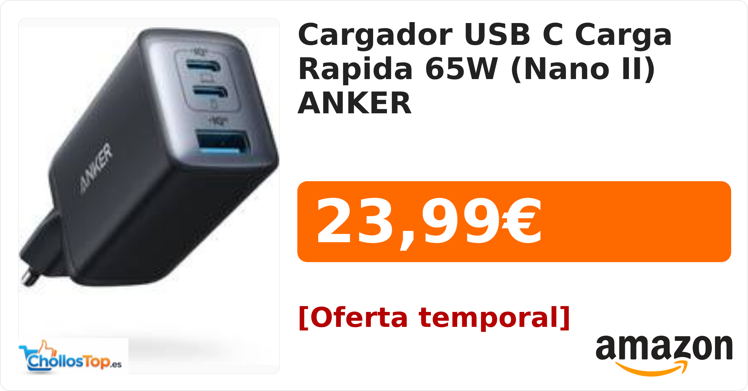 🔥 Cargador USB C Carga Rapida 65W (Nano II) ANKER