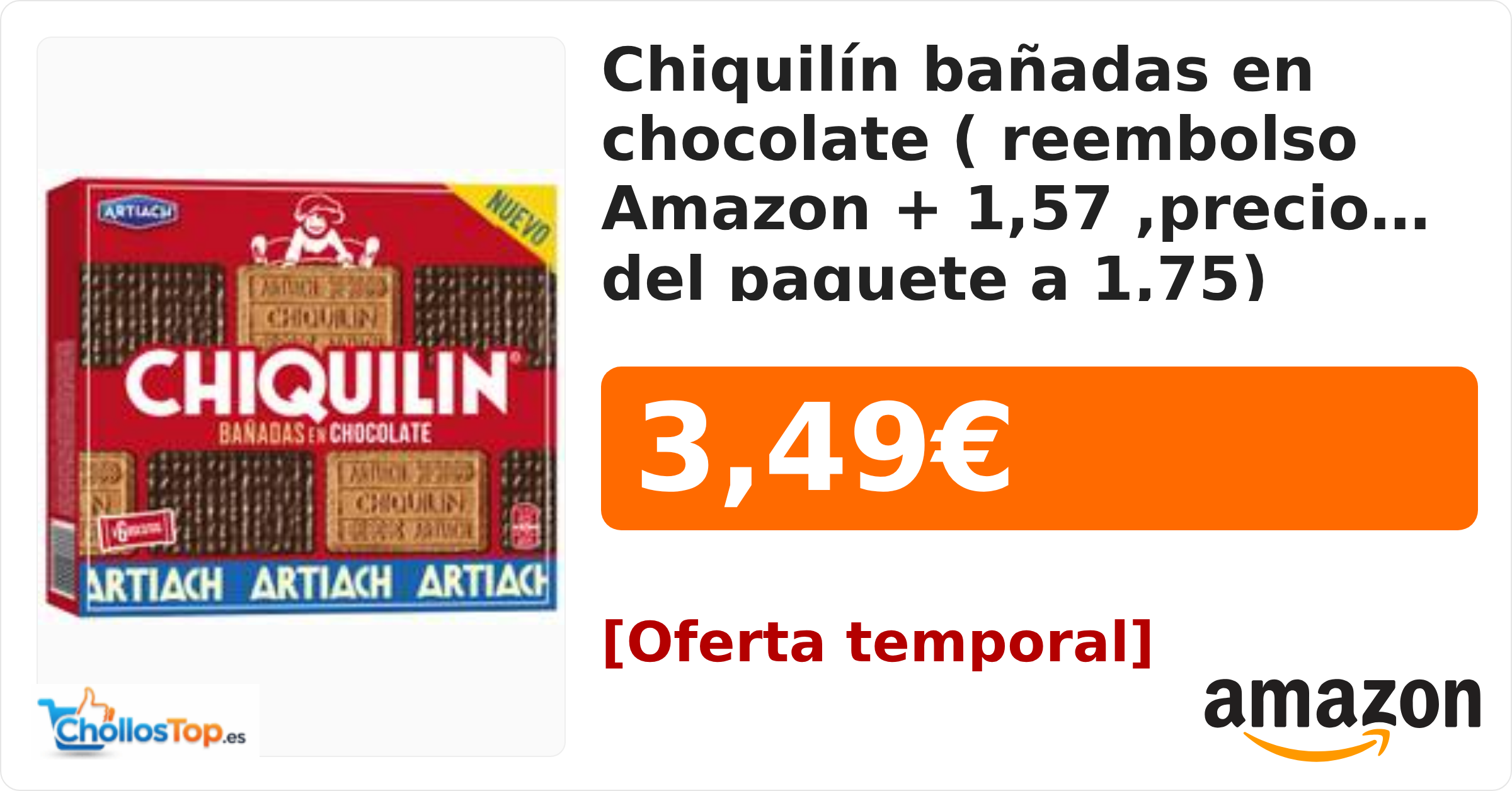 🔥 Chiquilín bañadas en chocolate ( reembolso Amazon + 1,57 ,precio del paquete a 1,75) BY ChollosTopEs septiembre 7, 2025 Chiquilín bañadas en chocolate ( reembolso Amazon + 1,57 ,precio del paquete a 1,75) 💰 Precio actual: 3.49€ Ir al chollo