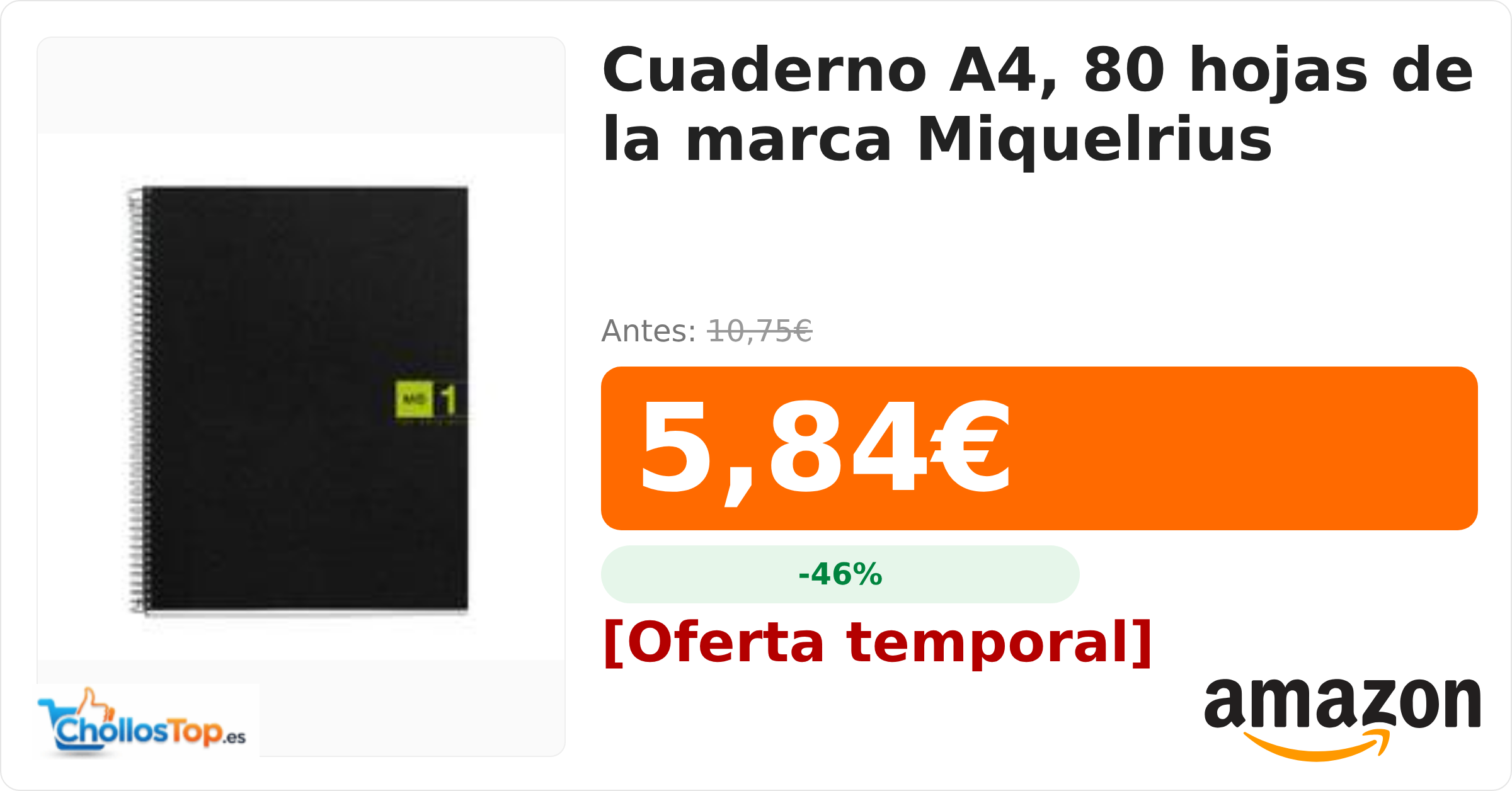 🔥 Cuaderno A4, 80 hojas de la marca Miquelrius