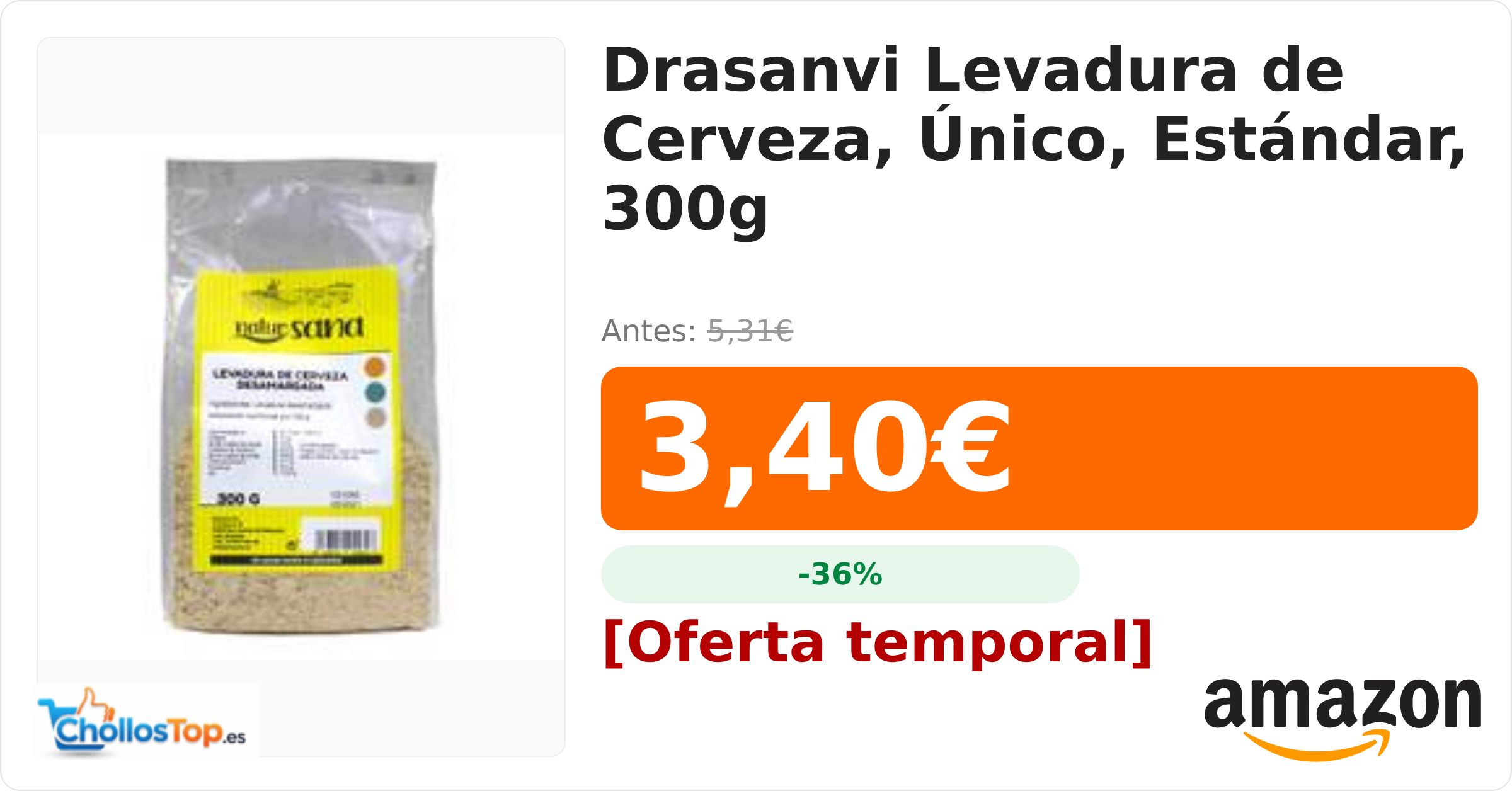 🔥 Drasanvi Levadura de Cerveza, Único, Estándar, 300g BY ChollosTopEs septiembre 9, 2025 Drasanvi Levadura de Cerveza, Único, Estándar, 300g 💰 Precio actual: 3.4€ 🪙 Antes: 5.31€ 📉 Descuento: -36% Ir al chollo