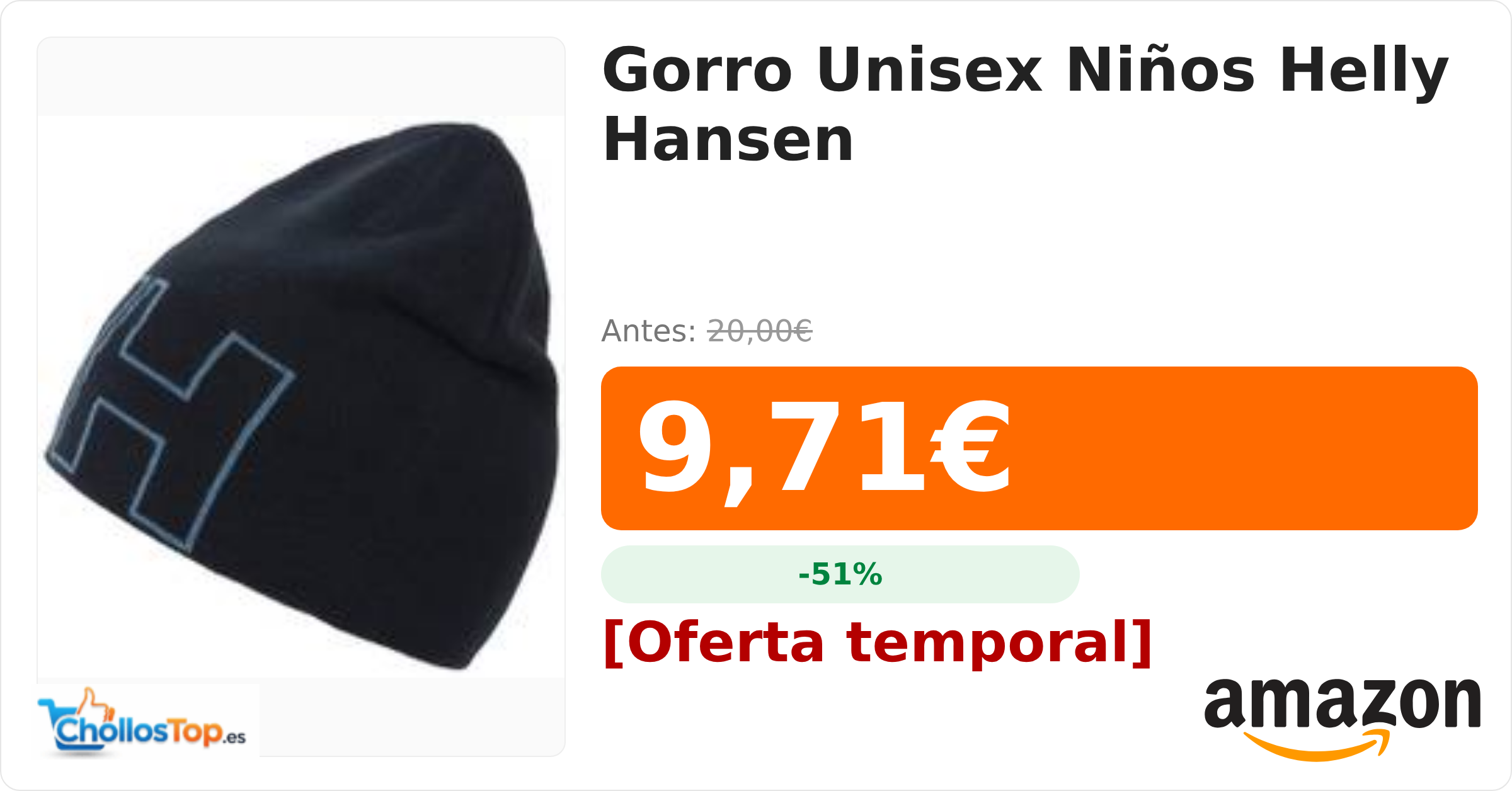🔥 Gorro Unisex Niños Helly Hansen BY ChollosTopEs septiembre 9, 2025 Gorro Unisex Niños Helly Hansen 💰 Precio actual: 9.71€ 🪙 Antes: 20€ 📉 Descuento: -51% Ir al chollo