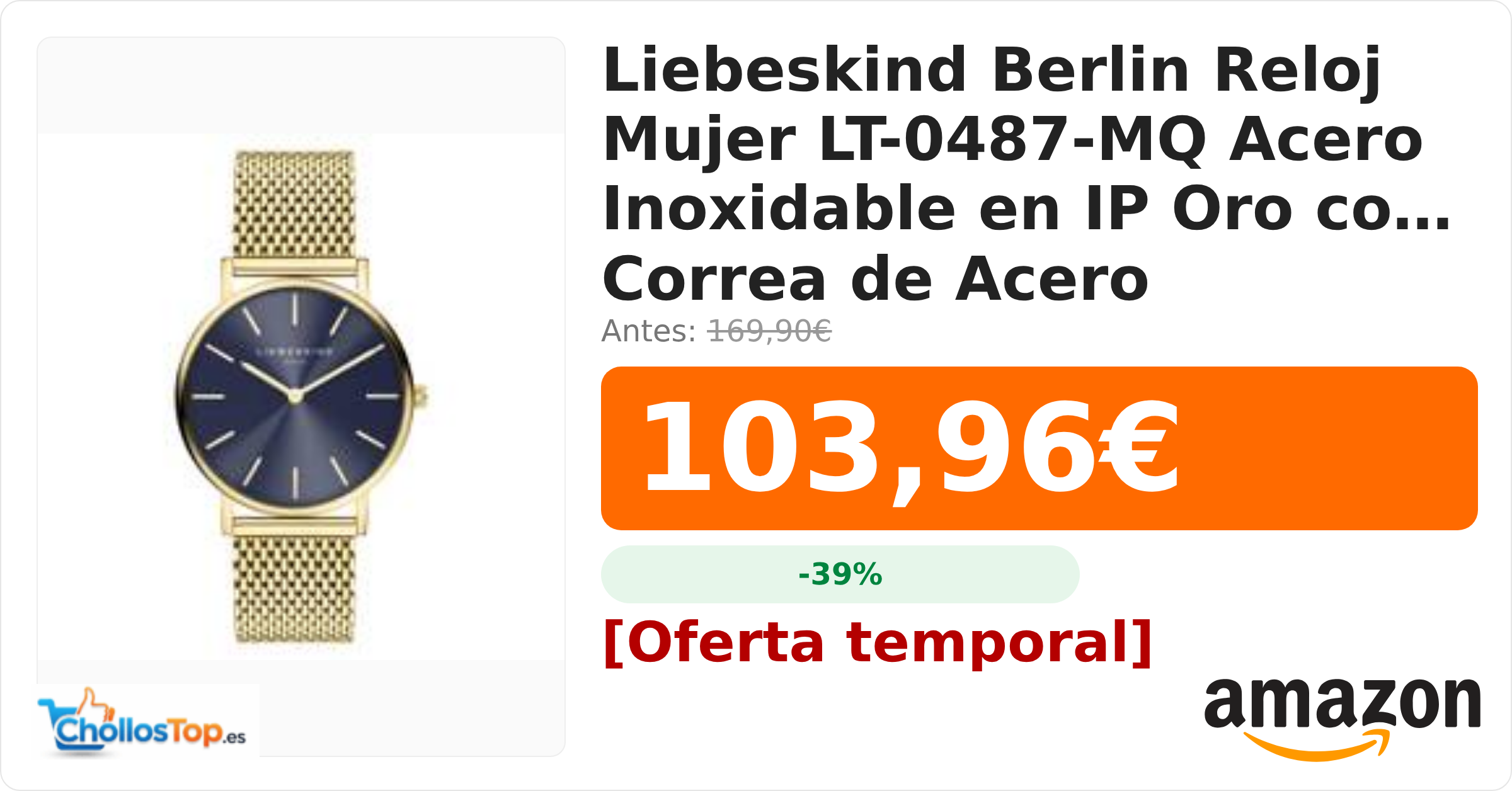 🔥 Liebeskind Berlin Reloj Mujer LT-0487-MQ Acero Inoxidable en IP Oro con Correa de Acero BY ChollosTopEs septiembre 9, 2025 Liebeskind Berlin Reloj Mujer LT-0487-MQ Acero Inoxidable en IP Oro con Correa de Acero 💰 Precio actual: 103.96€ 🪙 Antes: 169.9€ 📉 Descuento: -39% Ir al chollo
