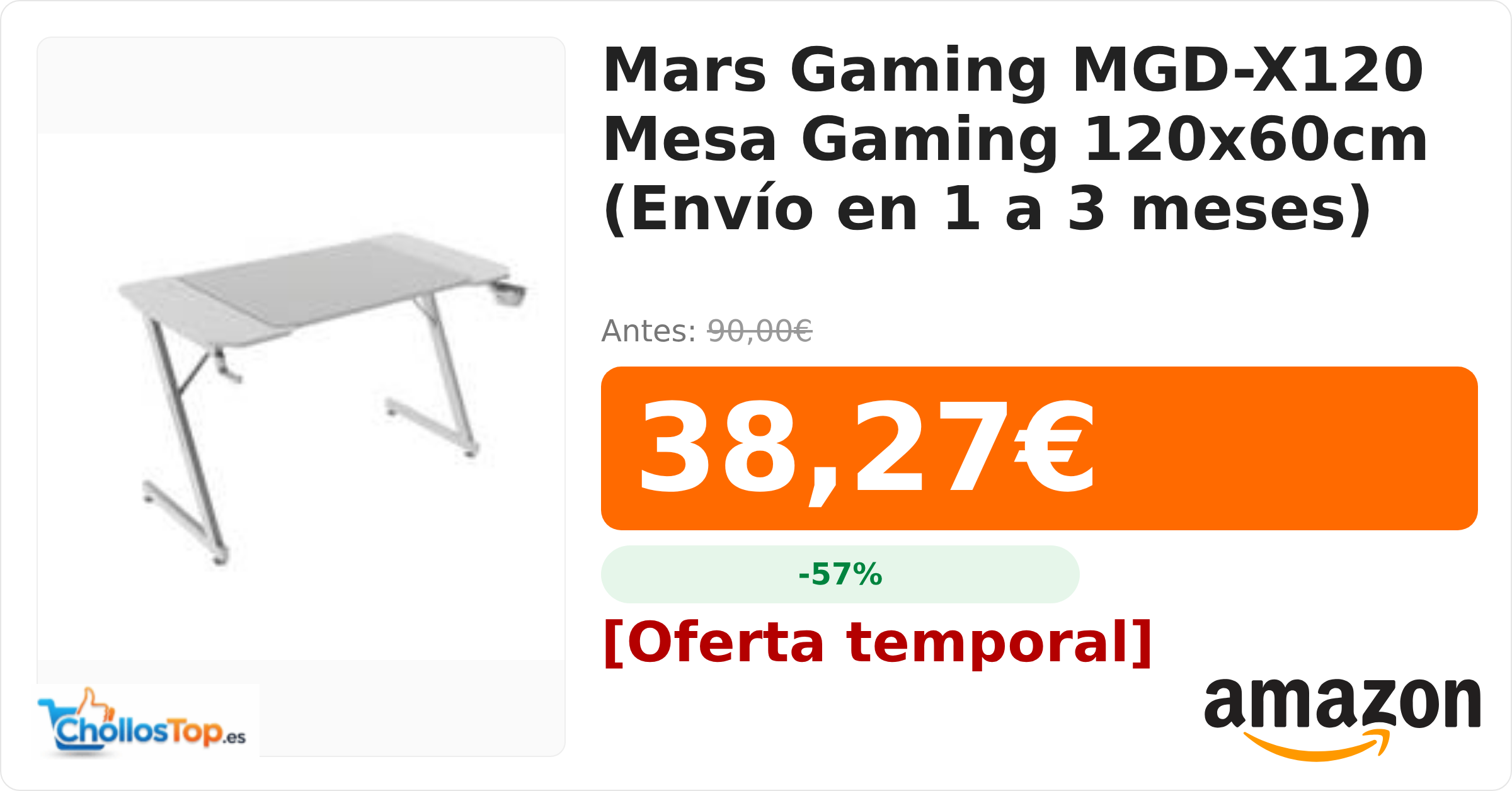 🔥 Mars Gaming MGD-X120 Mesa Gaming 120x60cm (Envío en 1 a 3 meses) BY ChollosTopEs septiembre 9, 2025 Mars Gaming MGD-X120 Mesa Gaming 120x60cm (Envío en 1 a 3 meses) 💰 Precio actual: 38.27€ 🪙 Antes: 90€ 📉 Descuento: -57% Ir al chollo