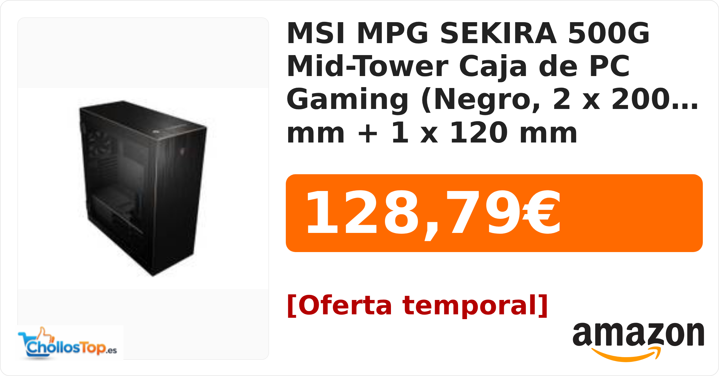 🔥 MSI MPG SEKIRA 500G Mid-Tower Caja de PC Gaming (Negro, 2 x 200 mm + 1 x 120 mm Ventiladores Incluidos, USB 3.2 Gen2 Type-C, 4 mm