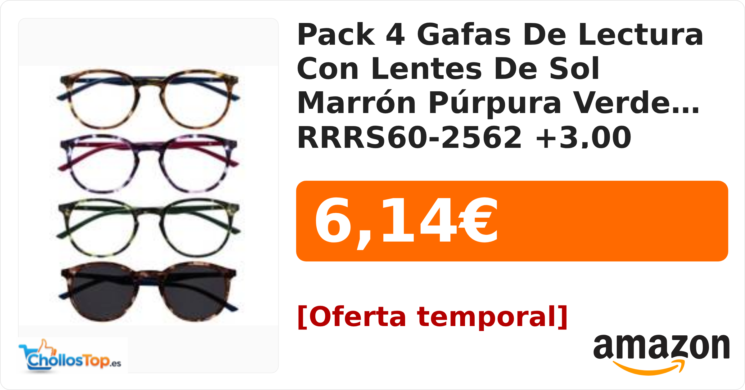 🔥 Pack 4 Gafas De Lectura Con Lentes De Sol Marrón Púrpura Verde RRRS60-2562 +3,00 BY ChollosTopEs septiembre 9, 2025 Pack 4 Gafas De Lectura Con Lentes De Sol Marrón Púrpura Verde RRRS60-2562 +3,00 💰 Precio actual: 6.14€ Ir al chollo
