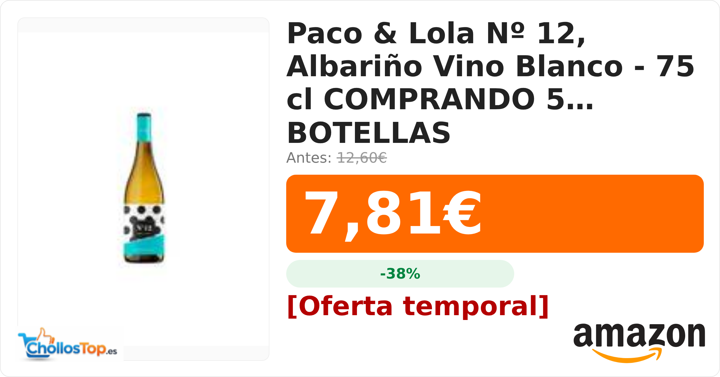 Paco & Lola Nº 12, Albariño Vino Blanco - 75 cl COMPRANDO 5 BOTELLAS