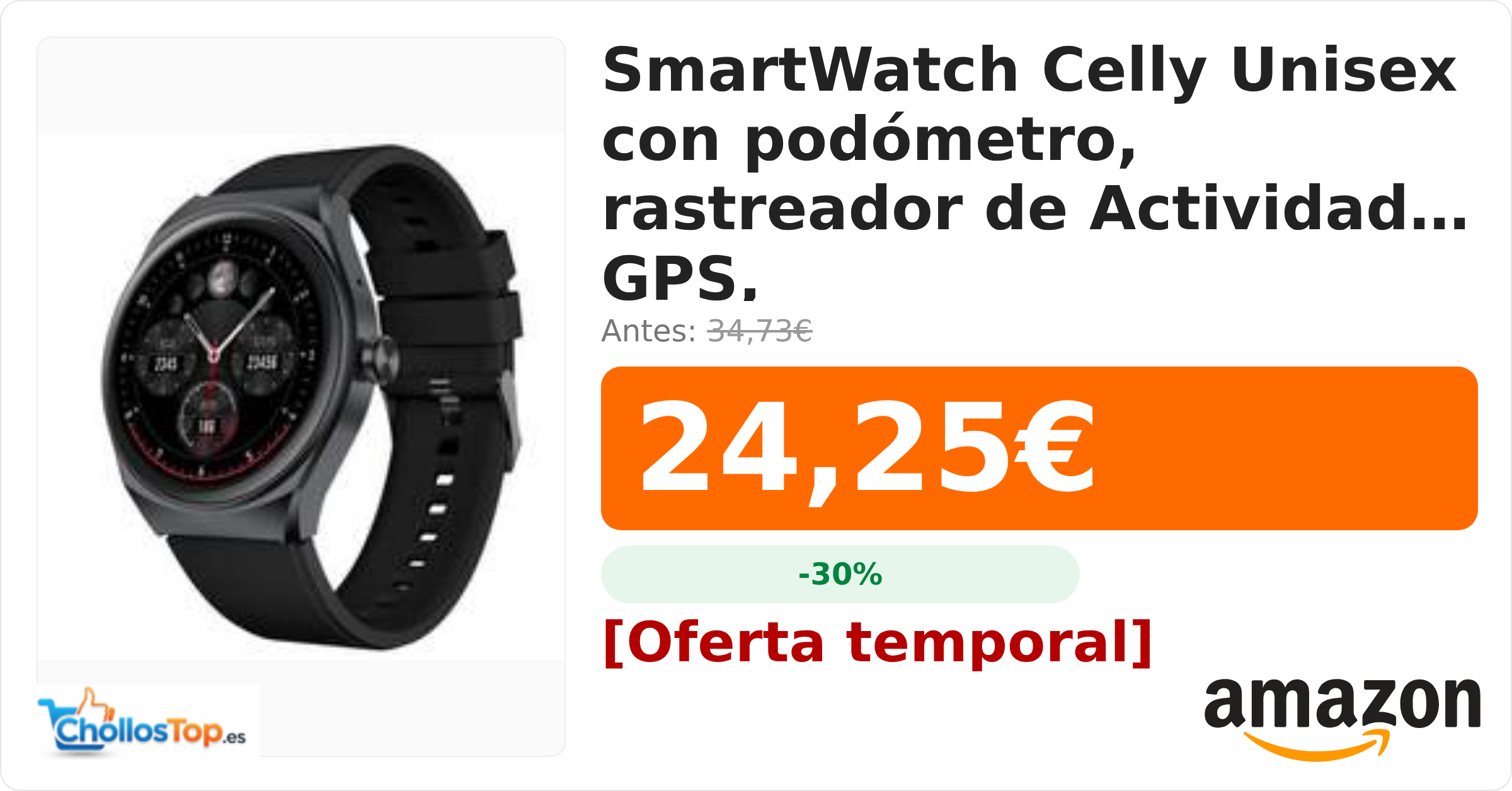 🔥 SmartWatch Celly Unisex con podómetro, rastreador de Actividad y GPS, BY ChollosTopEs septiembre 9, 2025 SmartWatch Celly Unisex con podómetro, rastreador de Actividad y GPS, 💰 Precio actual: 24.25€ 🪙 Antes: 34.73€ 📉 Descuento: -30% Ir al chollo