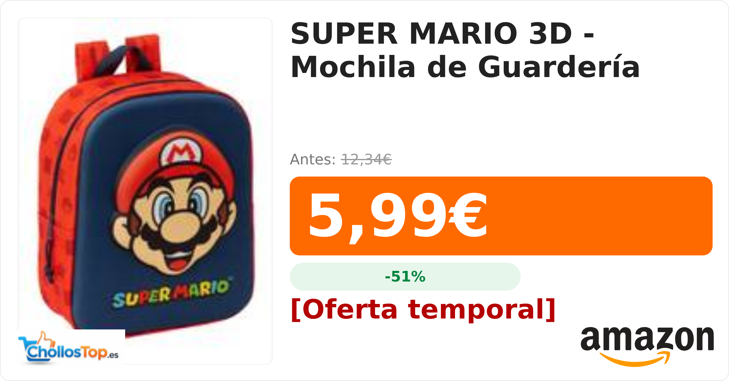 🔥 SUPER MARIO 3D – Mochila de Guardería