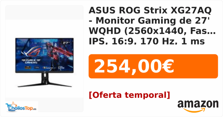 🔥 ASUS ROG Strix XG27AQ – Monitor Gaming de 27" WQHD (2560×1440, Fast IPS, 16:9, 170 Hz, 1 ms (GTG), ELMB SYNC, G-SYNC Compatible)