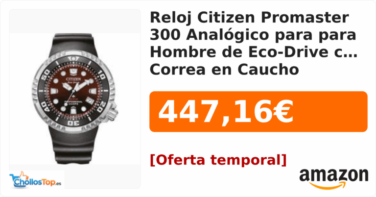 Reloj Citizen Promaster 300 Analógico para para Hombre de Eco-Drive con Correa en Caucho BN1024-01Z💰 Precio actual: 447.16€Ir al chollo