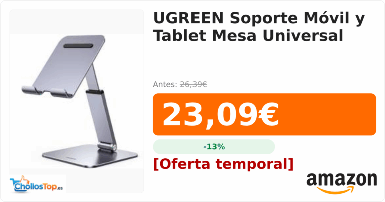UGREEN Soporte Móvil y Tablet Mesa Universal💰 Precio actual: 23.09€🪙 Antes: 26.39€📉 Descuento: -13%Ir al chollo