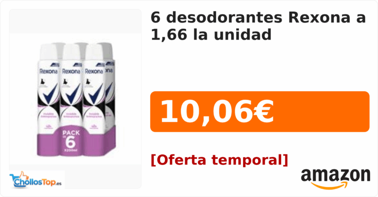 6 desodorantes Rexona a 1,66 la unidad💰 Precio actual: 10.06€Ir al chollo