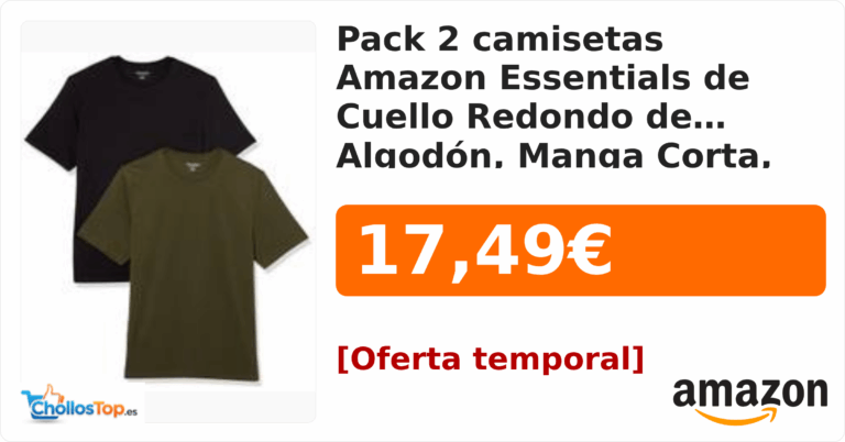 Pack 2 camisetas Amazon Essentials de Cuello Redondo de Algodón, Manga Corta, Corte Clásico Hombre💰 Precio actual: 17.49€Ir al chollo