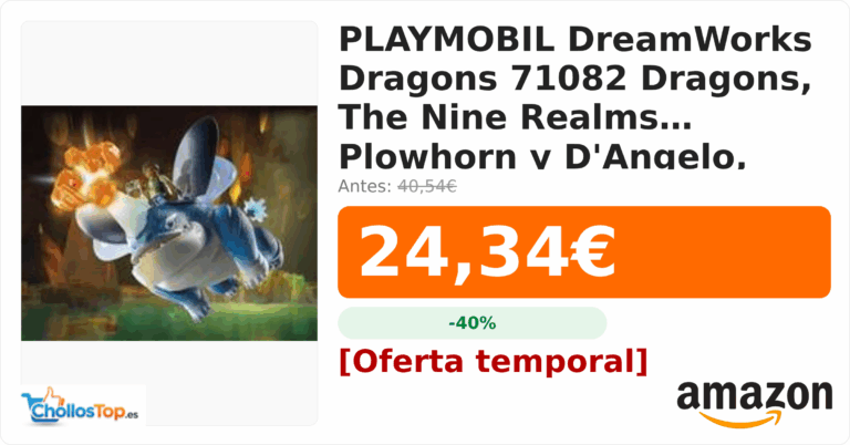 PLAYMOBIL DreamWorks Dragons 71082 Dragons, The Nine Realms Plowhorn y D'Angelo, Juguete para niños a Partir de 4 años💰 Precio actual: 24.34€🪙 Antes: 40.54€📉 Descuento:...