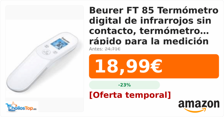 Beurer FT 85 Termómetro digital de infrarrojos sin contacto, termómetro rápido para la medición higiénica y segura de la temperatura💰 Precio actual: 18.99€🪙 Antes: 24.71€📉...
