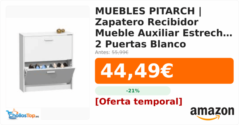 MUEBLES PITARCH | Zapatero Recibidor Mueble Auxiliar Estrecho 2 Puertas Blanco💰 Precio actual: 44.49€🪙 Antes: 55.99€📉 Descuento: -21%Ir al chollo