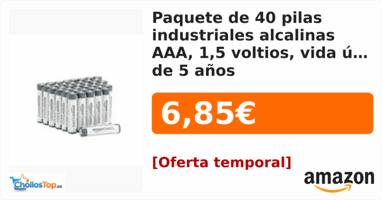Paquete de 40 pilas industriales alcalinas AAA, 1,5 voltios, vida útil de 5 años💰 Precio actual: 6.85€Ir al chollo