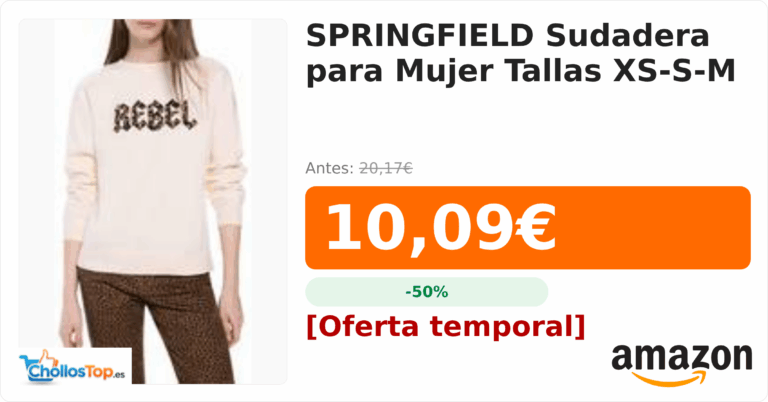 SPRINGFIELD Sudadera para Mujer Tallas XS-S-M💰 Precio actual: 10.09€🪙 Antes: 20.17€📉 Descuento: -50%Ir al chollo