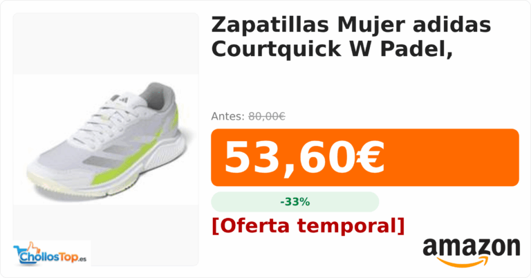 Zapatillas Mujer adidas Courtquick W Padel,💰 Precio actual: 53.6€🪙 Antes: 80€📉 Descuento: -33%Ir al chollo