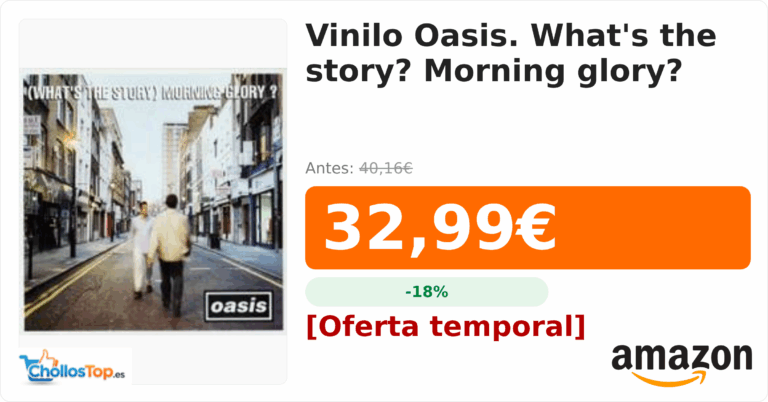 Vinilo Oasis. What's the story? Morning glory?💰 Precio actual: 32.99€🪙 Antes: 40.16€📉 Descuento: -18%Ir al chollo