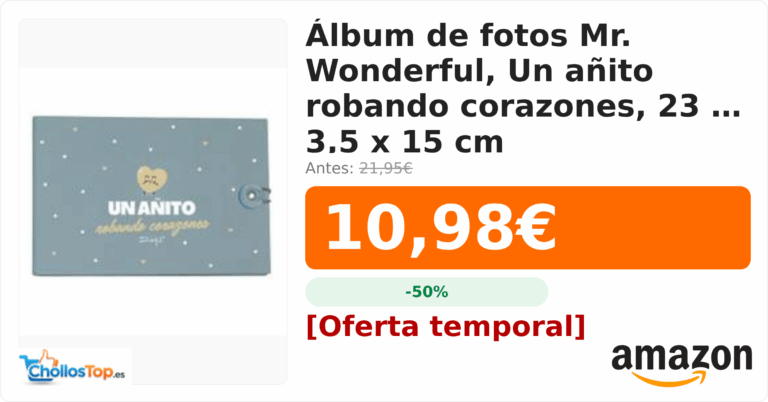 Álbum de fotos Mr. Wonderful, Un añito robando corazones, 23 x 3,5 x 15 cm💰 Precio actual: 10.98€🪙 Antes: 21.95€📉 Descuento: -50%Ir al chollo