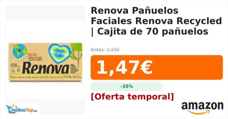 Renova Pañuelos Faciales Renova Recycled | Cajita de 70 pañuelos💰 Precio actual: 1.47€🪙 Antes: 2.25€📉 Descuento: -35%Ir al chollo