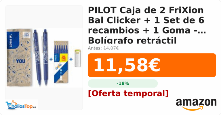 PILOT Caja de 2 FriXion Bal Clicker + 1 Set de 6 recambios + 1 Goma -Bolígrafo retráctil borrable con tinta termosensible - Rollerball💰 Precio...
