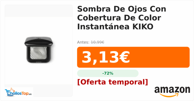 Sombra De Ojos Con Cobertura De Color Instantánea KIKO💰 Precio actual: 3.13€🪙 Antes: 10.99€📉 Descuento: -72%Ir al chollo
