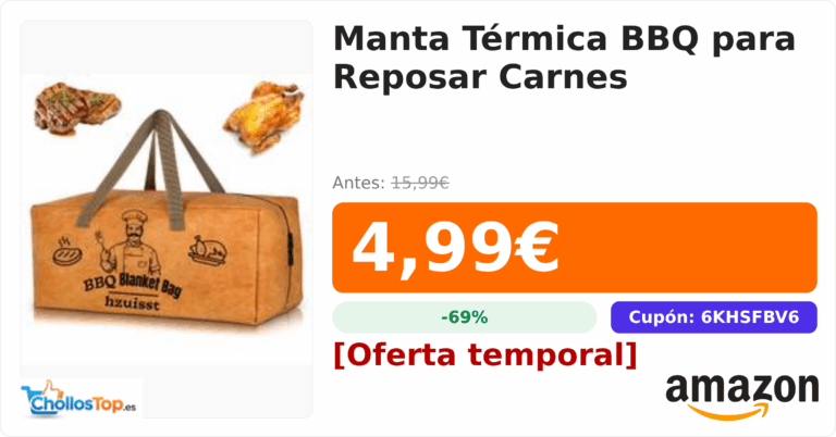 Manta Térmica BBQ para Reposar Carnes💰 Precio actual: 4.99€🪙 Antes: 15.99€📉 Descuento: -69%🏷️ Cupón: 6KHSFBV6Ir al chollo